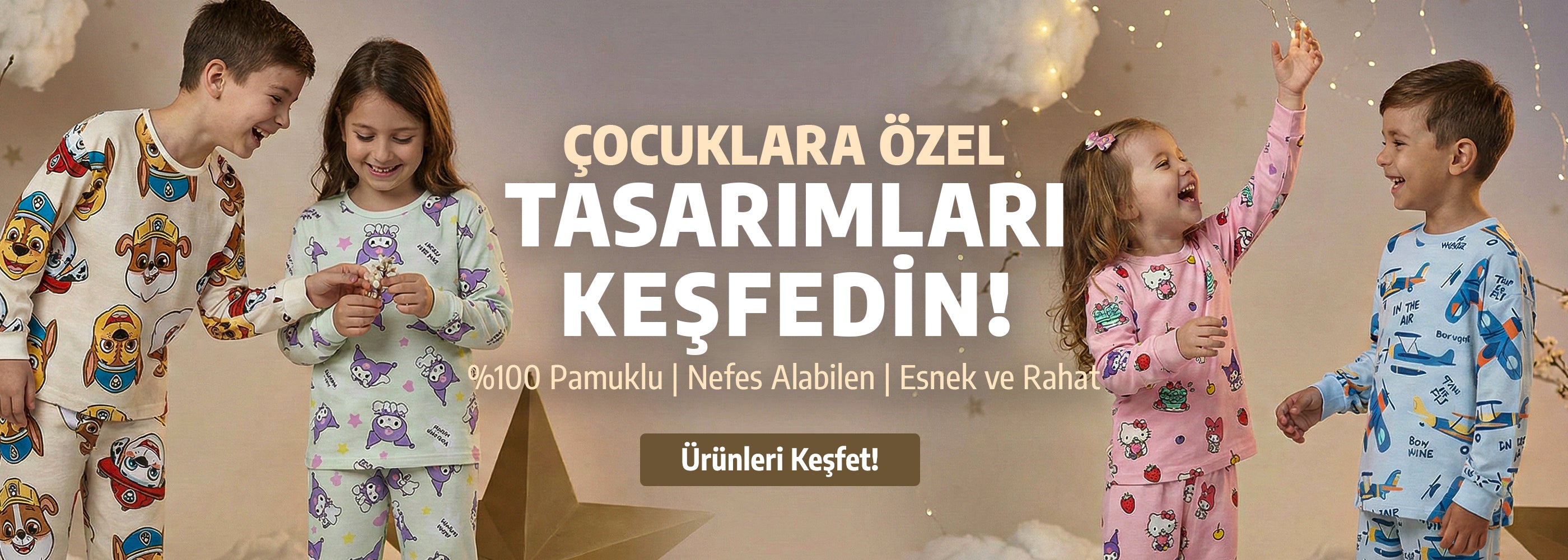 Hareketli günler ve rahat geceler için tasarlanan erkek çocuk koleksiyonumuz; dayanıklı kumaşlar, yumuşak dokular ve eğlenceli desenlerle konforu ve şıklığı bir arada sunar.