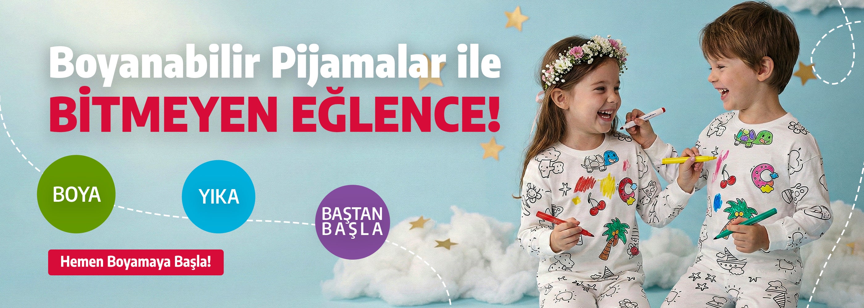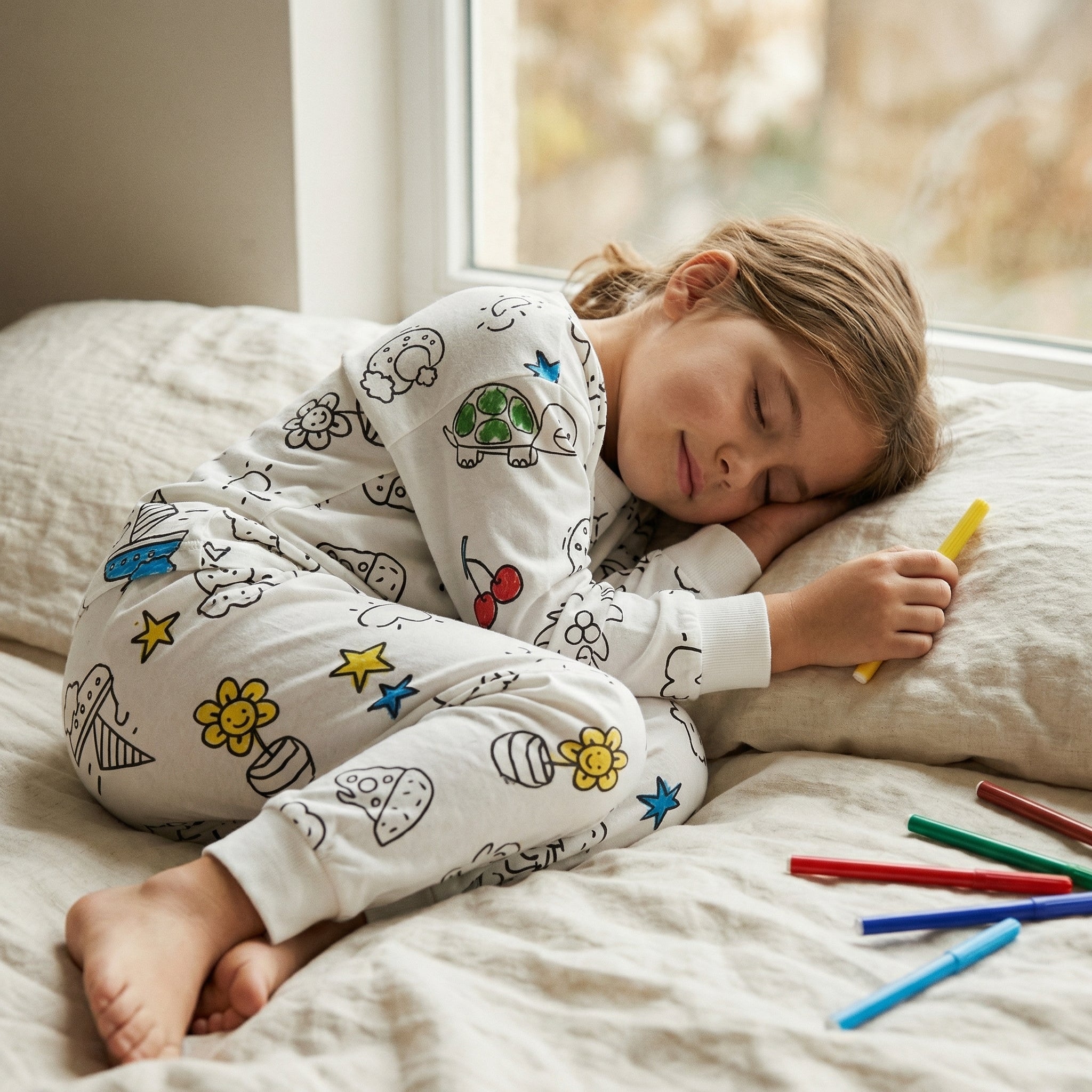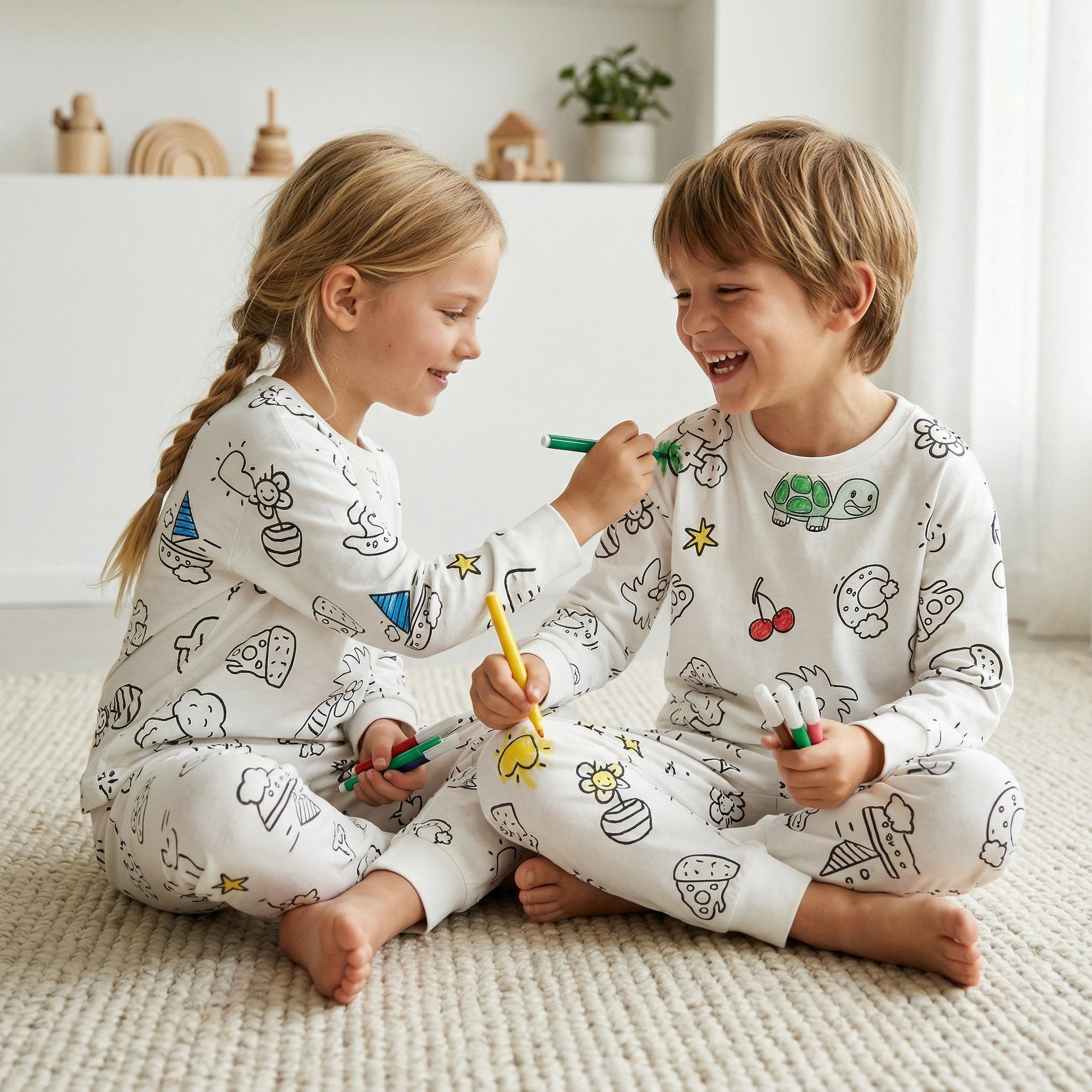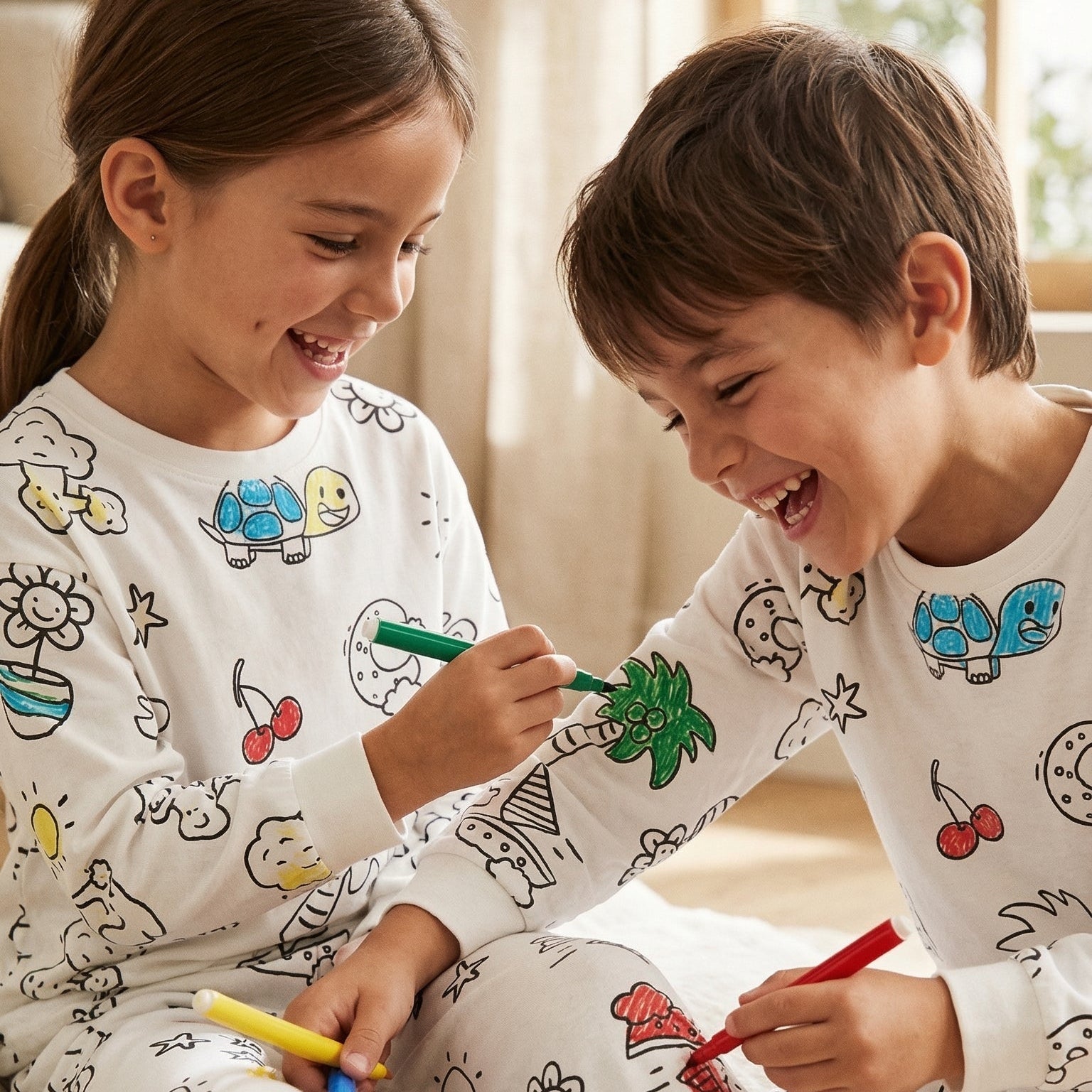 Zuzunga Boyanabilir Çocuk Pijama Takımı, çocukların hayal gücünü özgürce ifade edebilmesi için özel olarak tasarlandı.