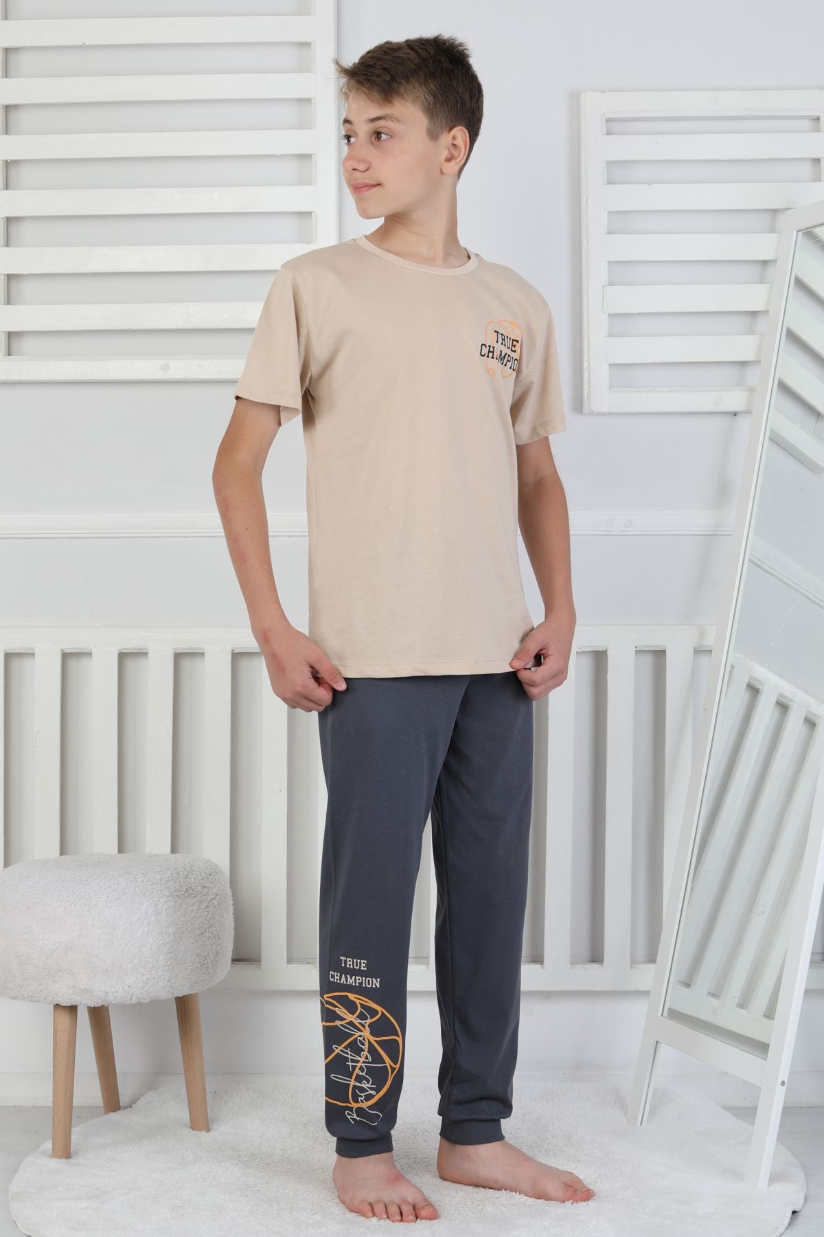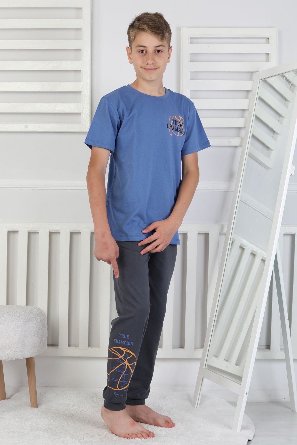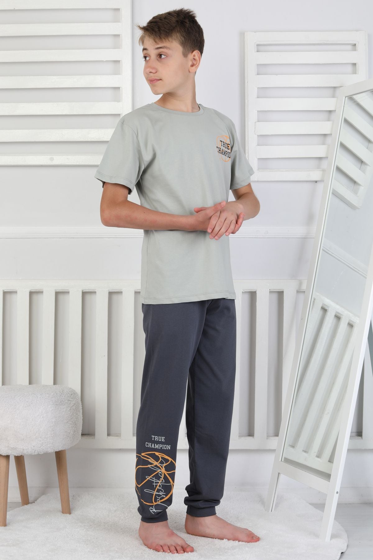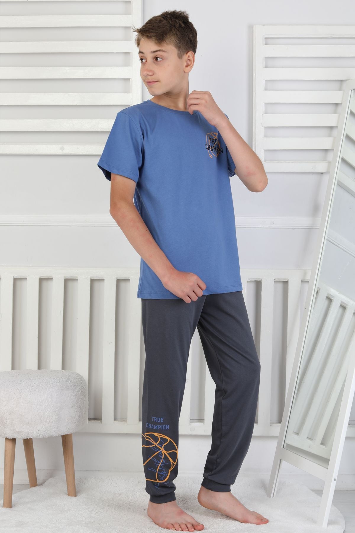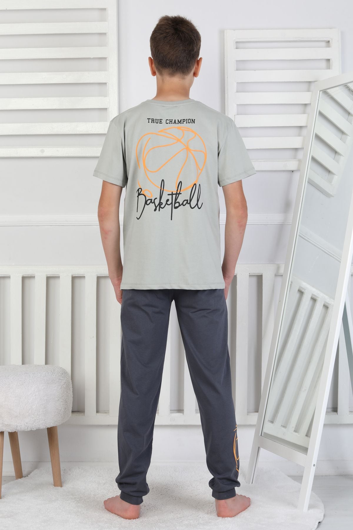 True Champion Basketbol Baskılı Kısa Kol Erkek Çocuk Pijama Takımı