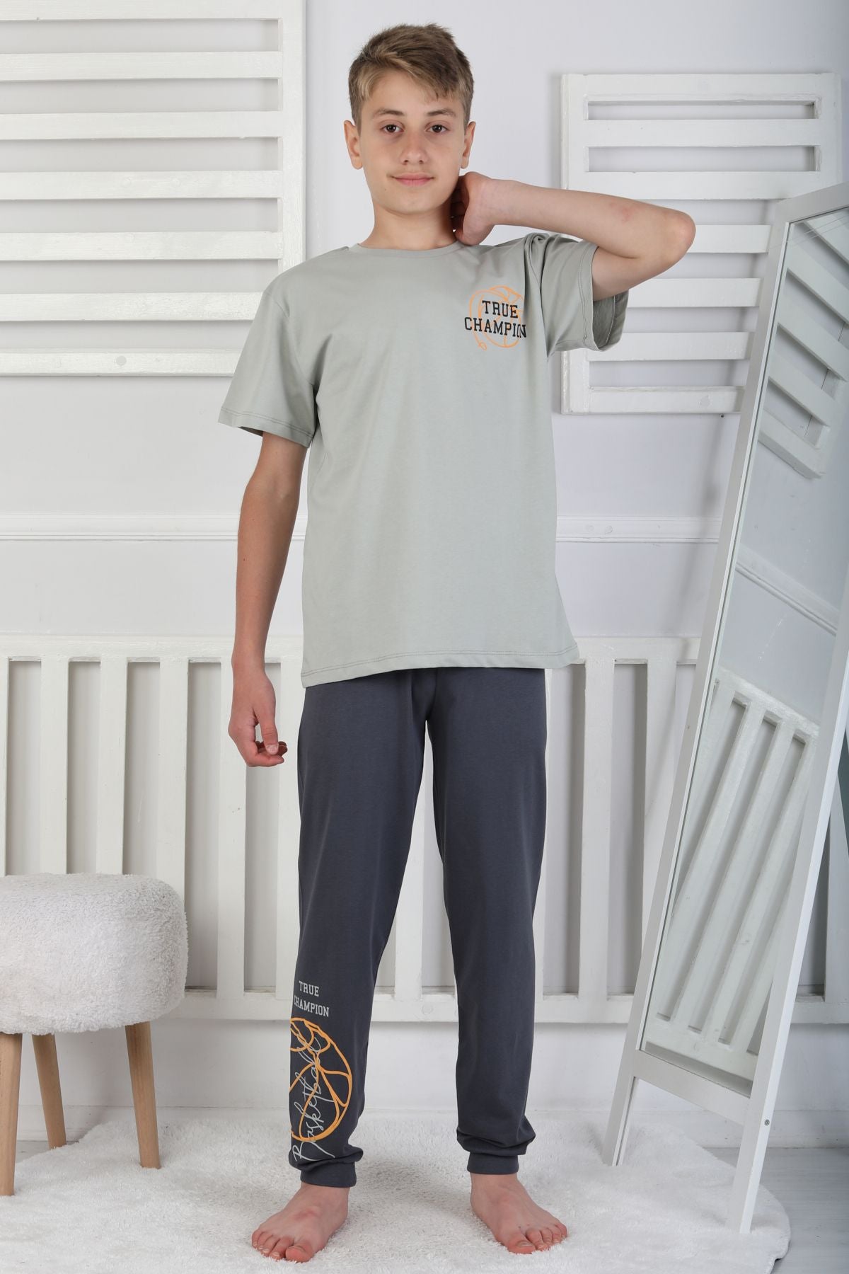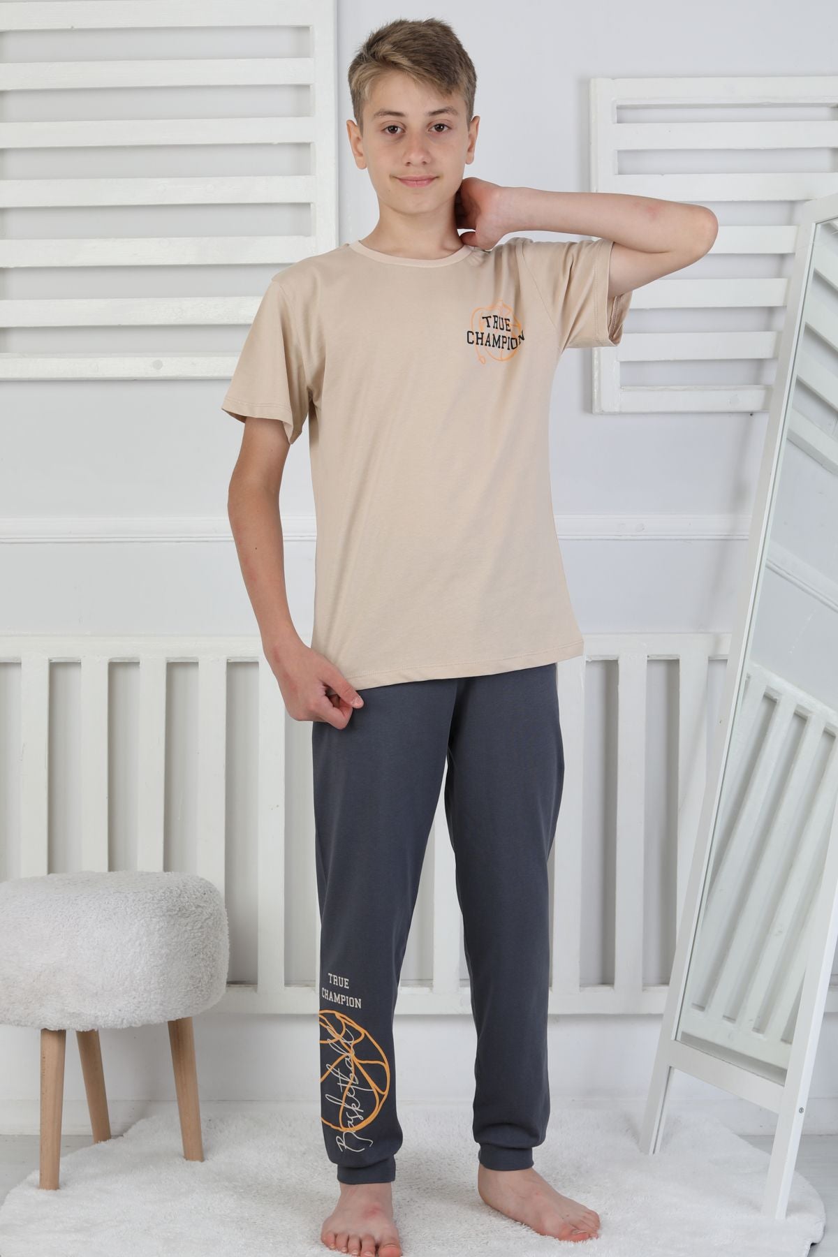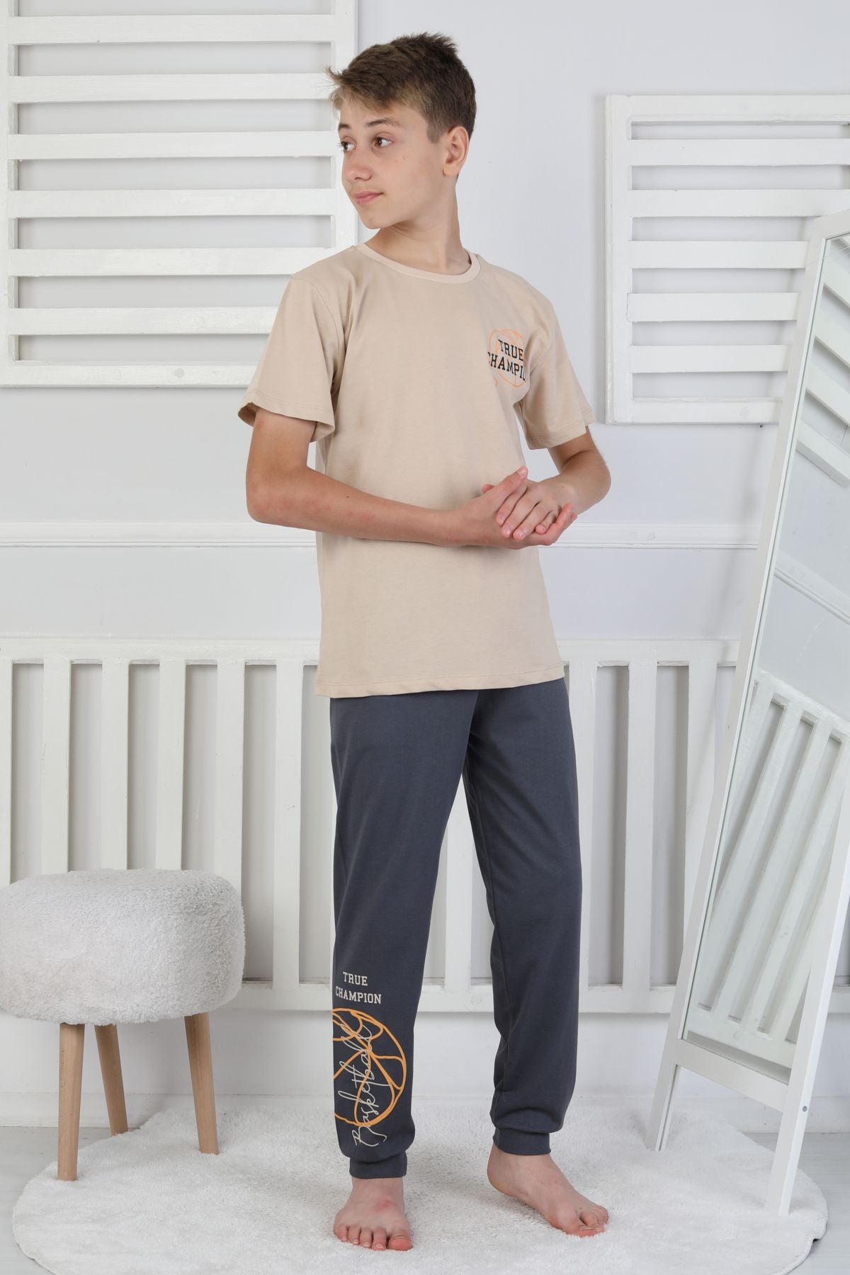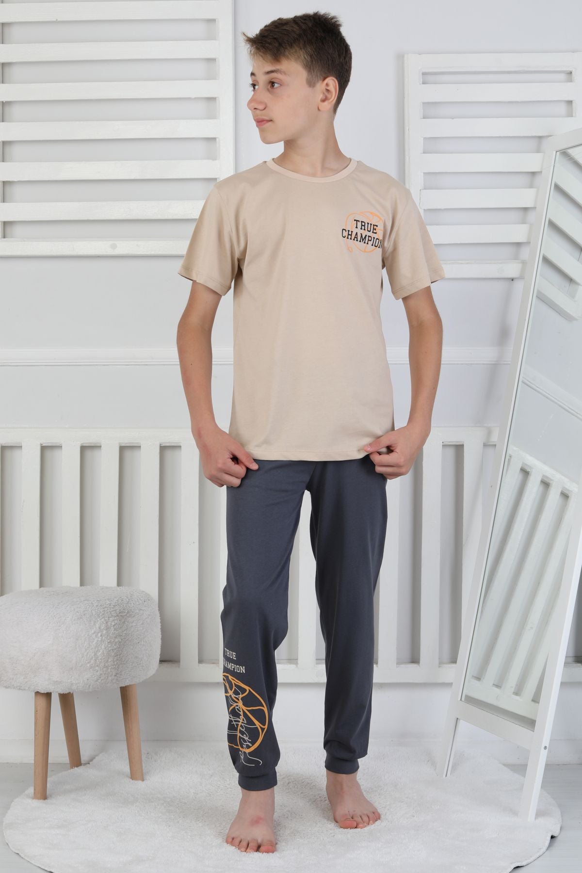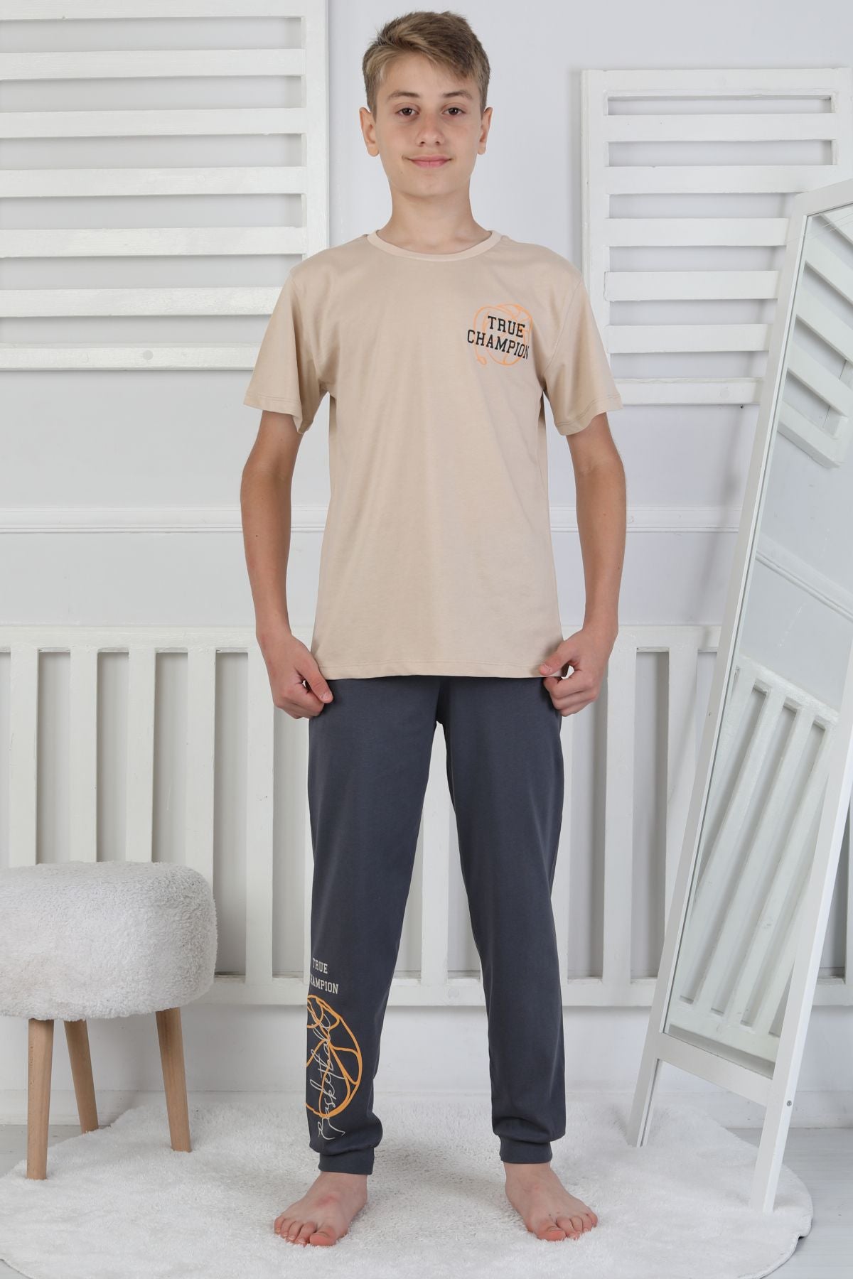 True Champion Basketbol Baskılı Kısa Kol Erkek Çocuk Pijama Takımı