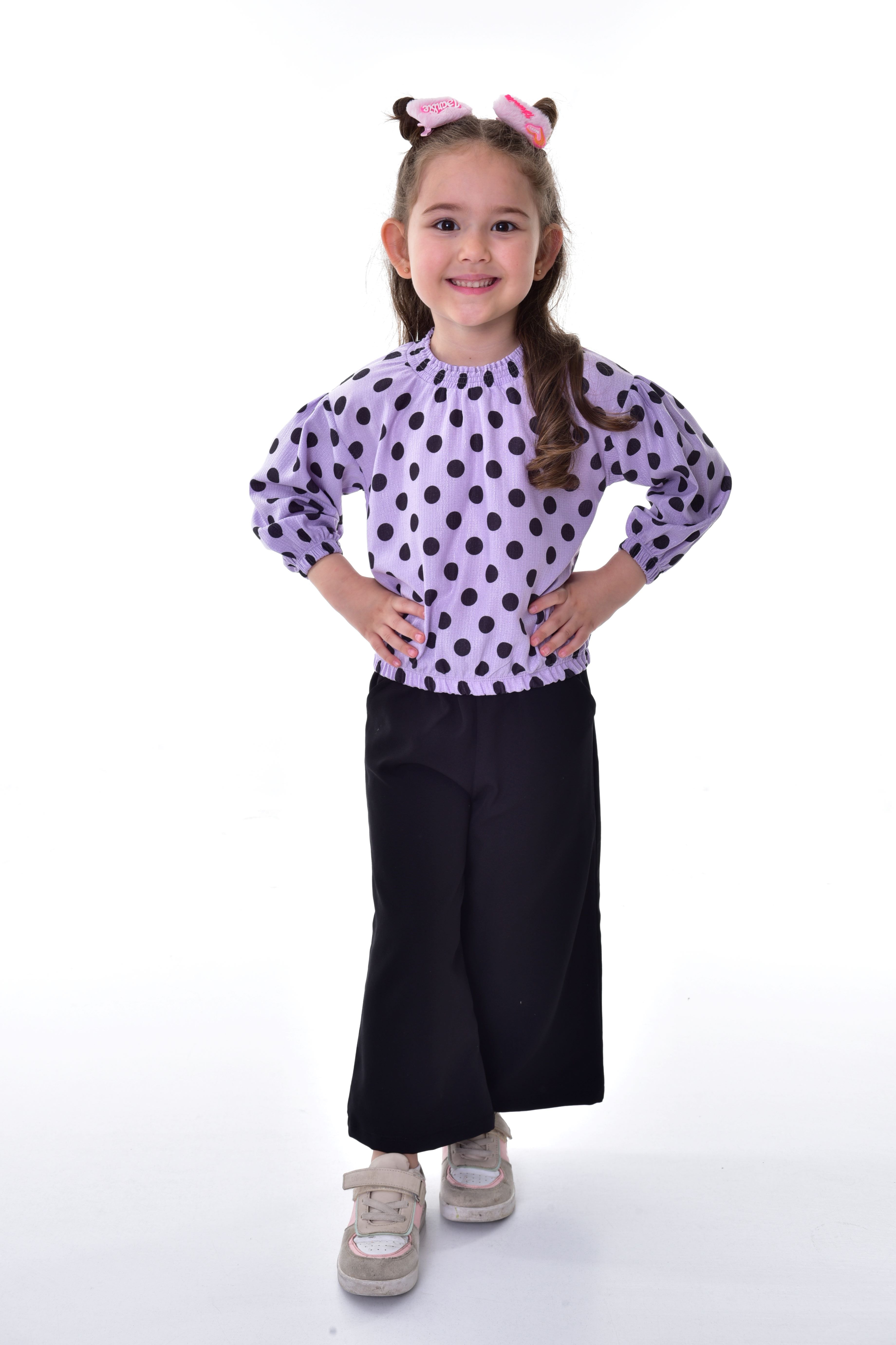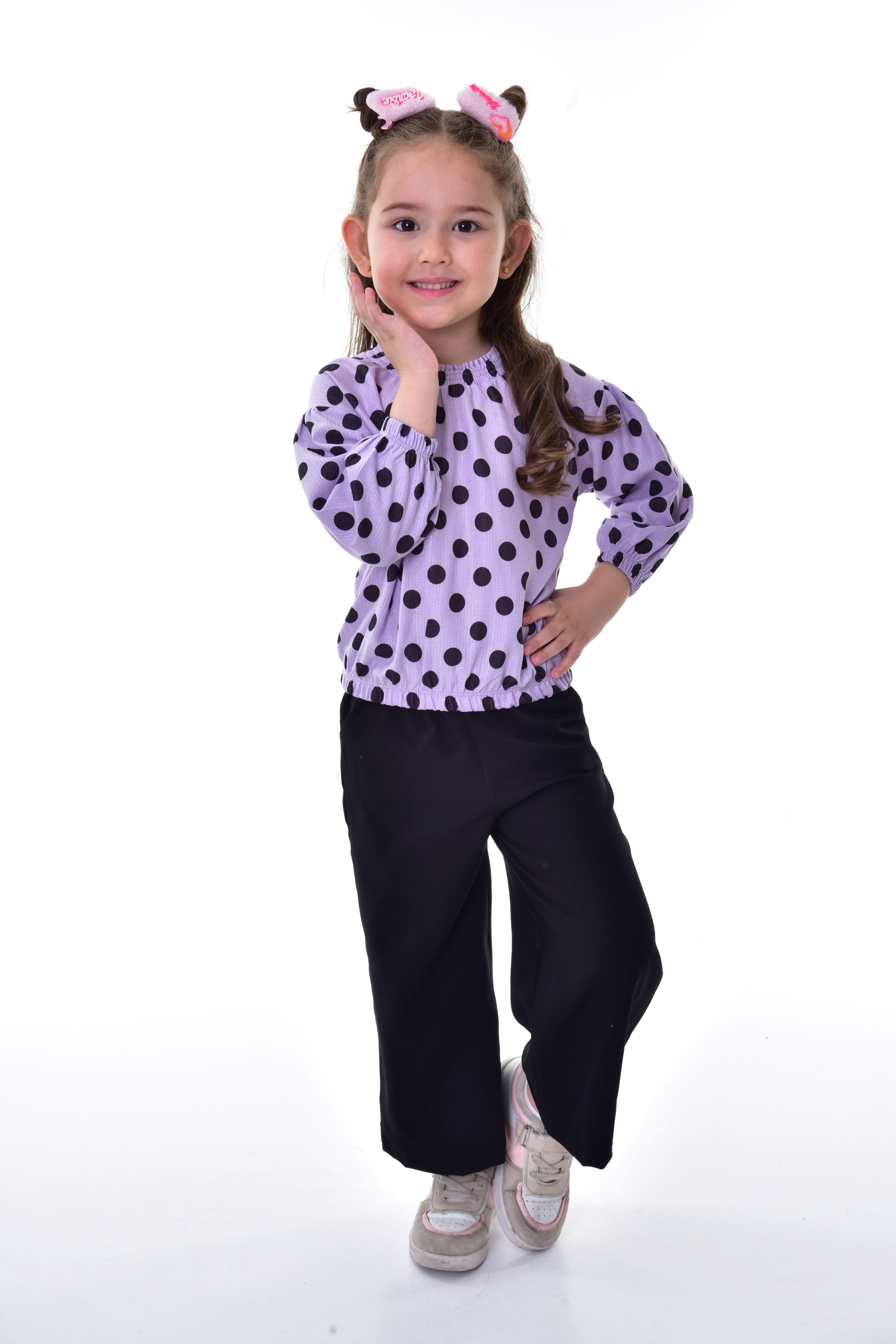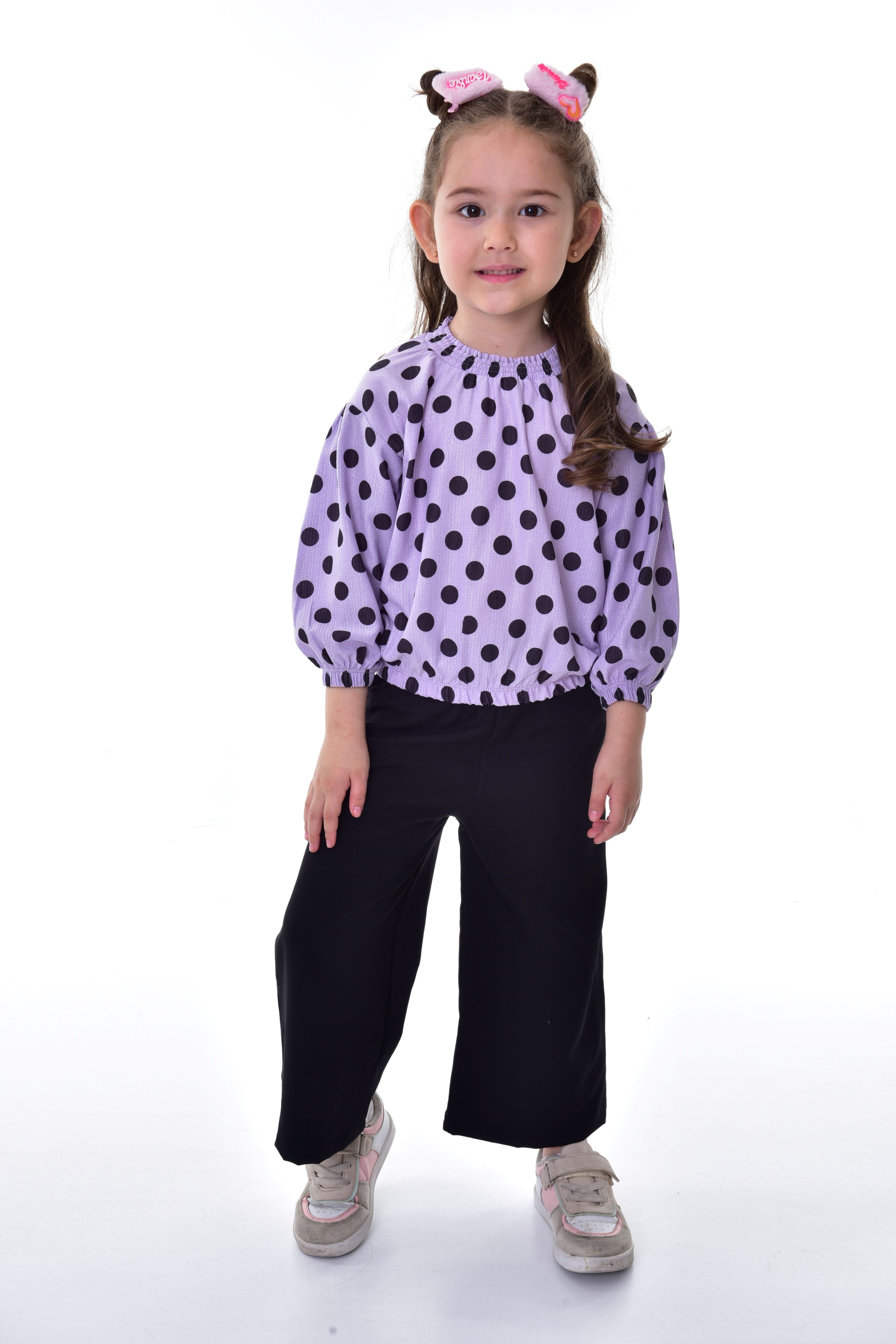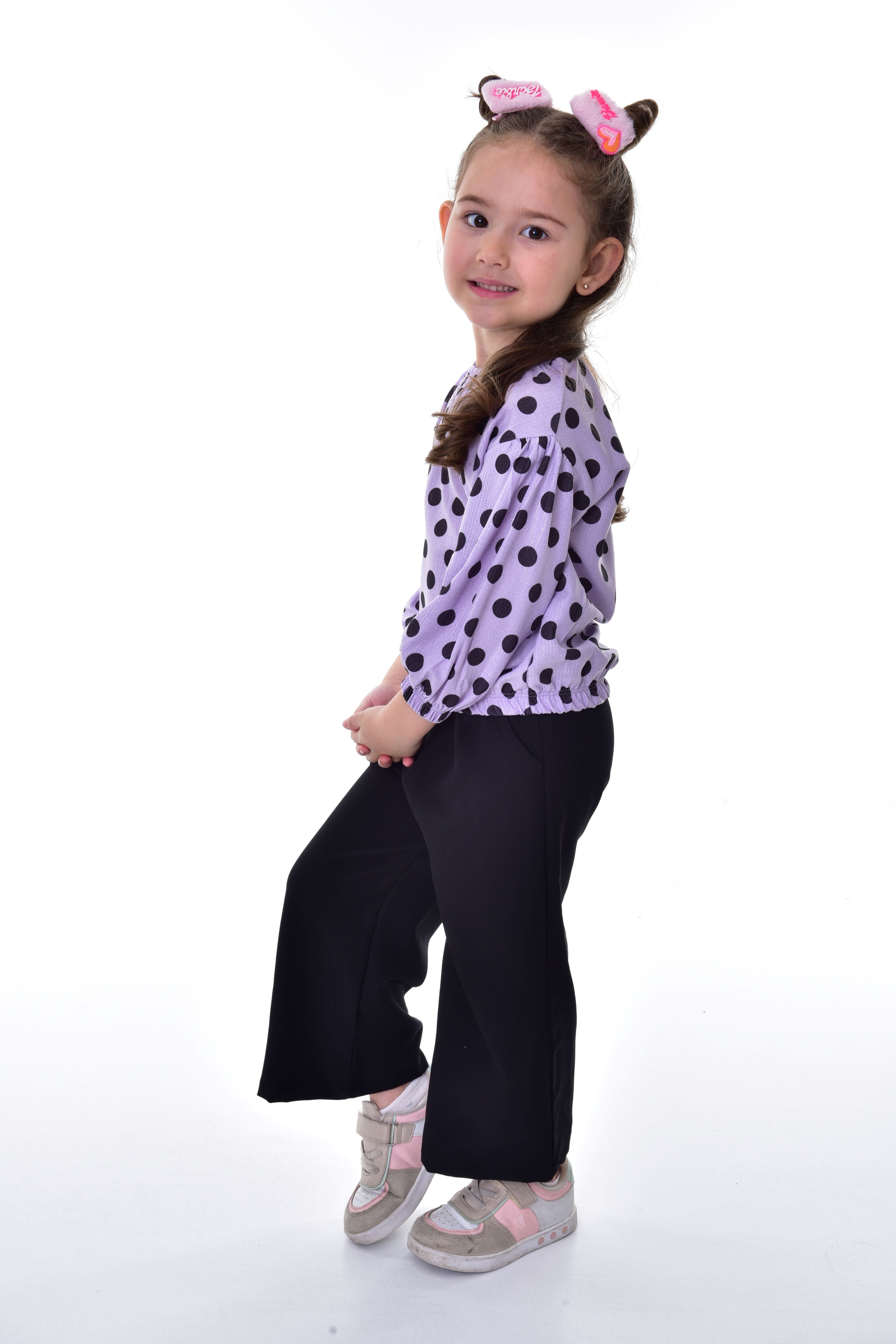 Poantiye Desenli Düşük Kol Kız Çocuk Alt-Üst Takım