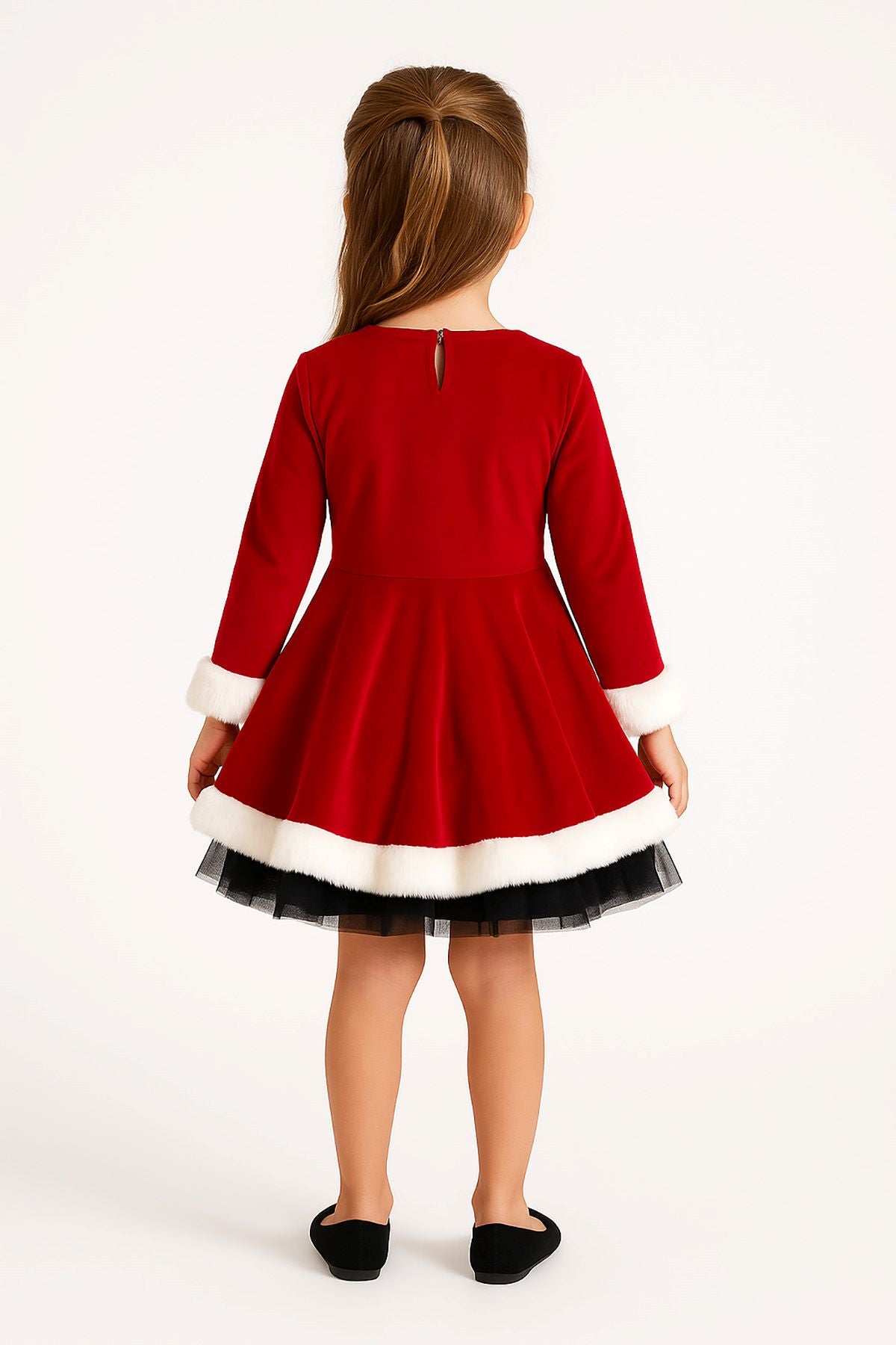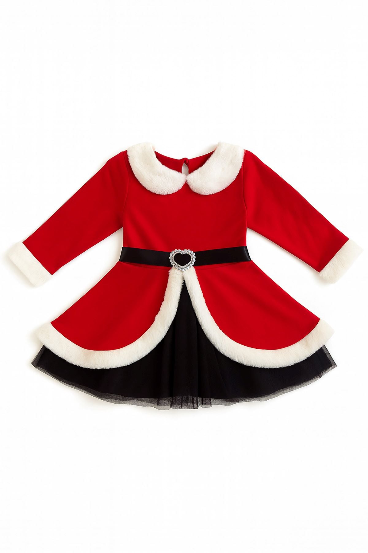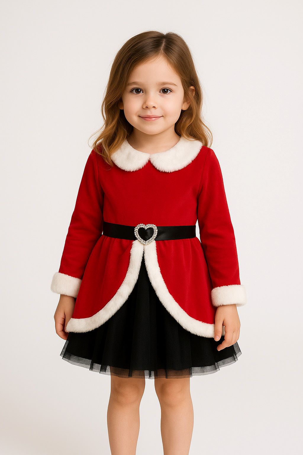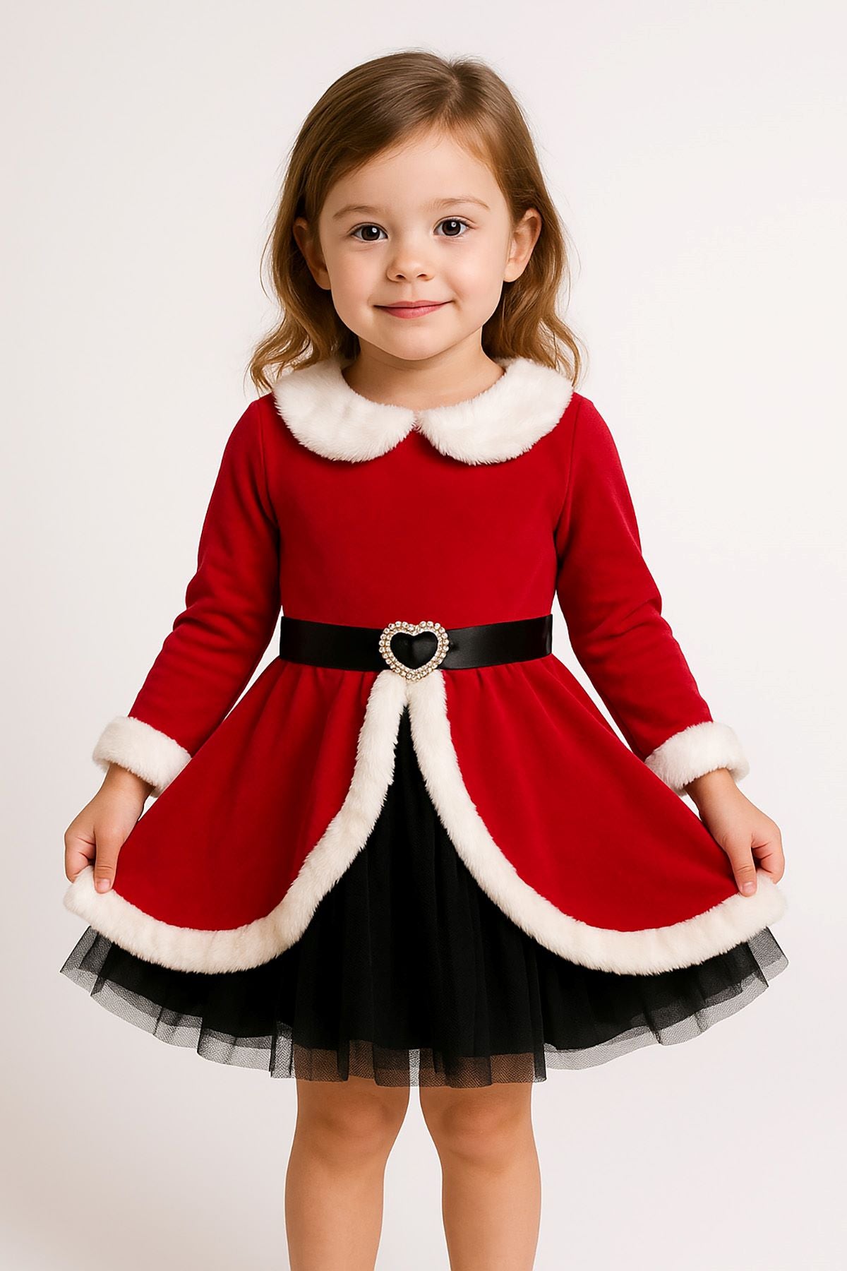 Kız Çocuk Kürklü Kemeri Tokalı Tül Elbise