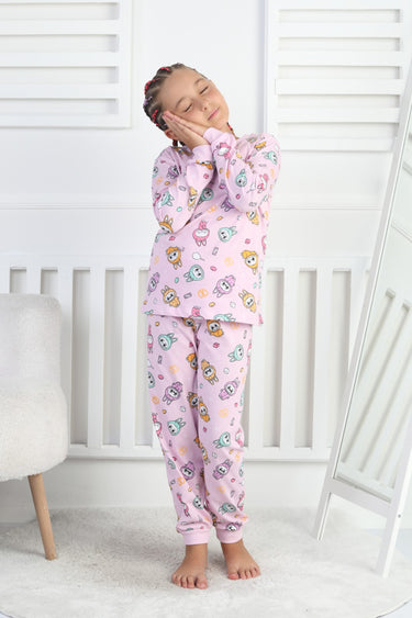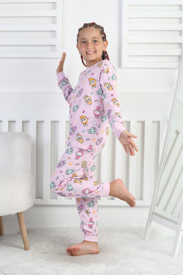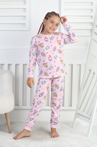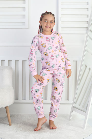 Organik pamuk süprem kumaştan üretilmiş, çocukların cildine zarar vermeyen yapısıyla güvenle tercih edilebilir.; - Lastikli bel tasarımı sayesinde pijamanın rahat bir şekilde oturmasını sağlar ve hareket özgürlüğü sunar.; - Her mevsim kullanıma uygun olan bu pijama takımı, tüm sezonlarda konforlu bir uyku deneyimi sunar.; - İki parçadan oluşan set içeriği; sweatshirt ve pantolon olmak üzere çocuğunuzun rahat etmesini sağlayacak ideal bir seçimdir.; - İpliği boyalı teknolojisi ile renklerin canlılığını uzun süre koruyarak estetik görünümünü muhafaza eder.; - Uzun manşetli paça detaylarıyla şık bir görünüm kazandırır.; - Yıkama talimatlarına uyulduğunda formunu kaybetmeden tekrar kullanılabilir; böylece ebeveynler için pratik bir bakım imkanı sunar.; - Homewear koleksiyonuna ait bu pijama takımı, evde geçirilen zamanları daha keyifli hale getirmek için özel olarak tasarlanmıştır.; - 2 parça halinde gelen set içeriğiyle hem ekonomik hem de fonksiyonel bir çözüm sunar.; - Rahat kesimiyle günlük kullanım için ideal olan bu pijama takımı, hareket serbestliği sağlar.; - Süprem dokuma tipi yumuşak dokusuyla cilt dostudur ve gün boyu rahatlık hissi verir.; - Çocukların enerjisine uyum sağlayan desenleriyle dikkat çekerken aynı zamanda cool&comfort persona'sını yansıtır.; - Türkiye menşeli olmasıyla yerel üretim avantajlarından faydalanırken global standartlara da uygunluğu garanti altına alır.; - Kız çocuklar için özel olarak tasarlanmış bu pijama takımı, onların tarzını tamamlar.; - Rahat kalıbıyla vücudu sarmayan yapıda olup gün içindeki aktivitelere kolayca adapte olur.; - Örme kumaşı sayesinde esneklik kazanan bu pijama takımı, aktif yaşam tarzına sahip çocuklar için uygundur.; - Çocuklar arasında popüler olan kısa kol tasarımının yanında bisiklet yakası ile modern bir görünüm sunar.; - %100 pamuk materyali nefes alabilir özellikte olup yaz aylarında bile ferahlık hissi verir.