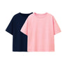 Basic 2'Li Kız Çocuk Bisiklet Yaka T-Shirt ( Lacivert - Pembe )