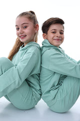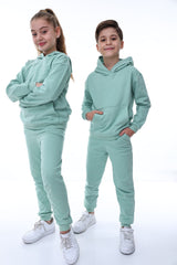 Basic Kapüşonlu 2 İplik Şardonlu Kanguru Cepli Çocuk Eşofman Takımı 3-10 Yaş Haki