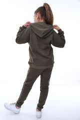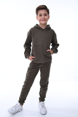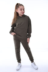 Basic Kapüşonlu 2 İplik Şardonlu Kanguru Cepli Çocuk Eşofman Takımı 3-10 Yaş Haki