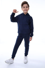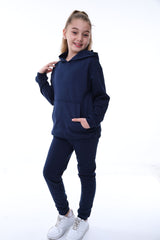 Basic Kapüşonlu 2 İplik Şardonlu Kanguru Cepli Çocuk Eşofman Takımı 3-10 Yaş Haki