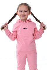 - Pembe renk seçeneğiyle dikkat çeken, çocukların enerjisine uyum sağlayan kapüşonlu eşofman takımı.