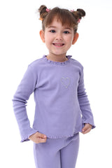 Kaşkorse Fırfırlı Nakış Detaylı Kız Çocuk Takım (Alt-Üst) Lacivert 3-8 Yaş