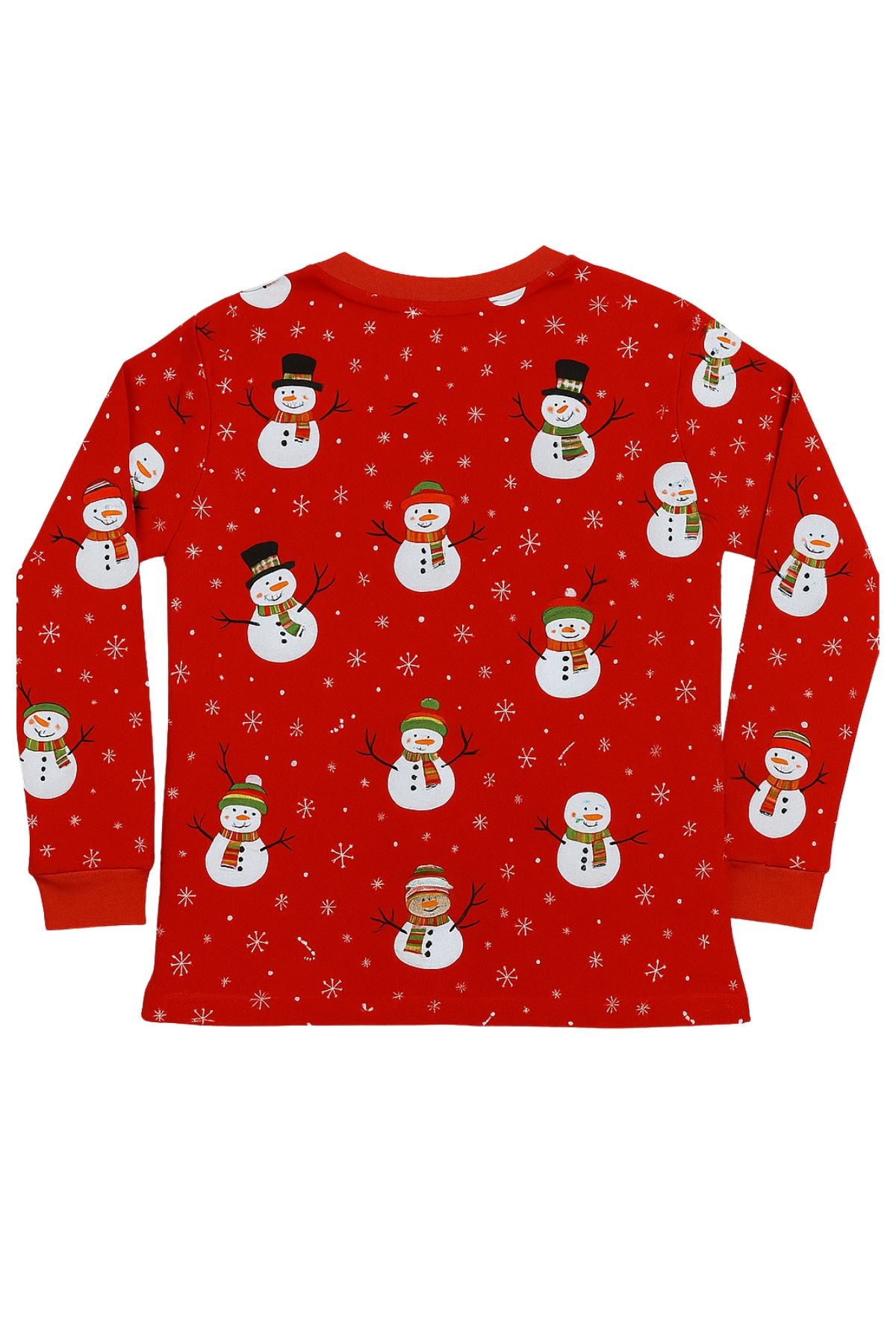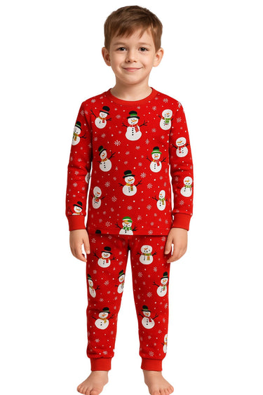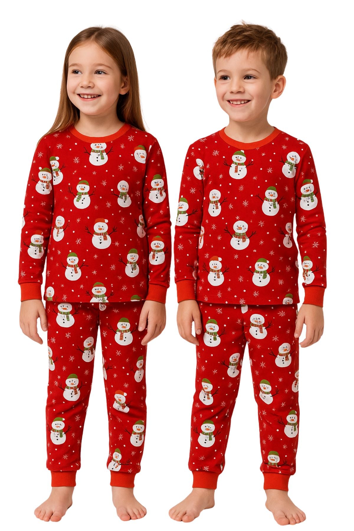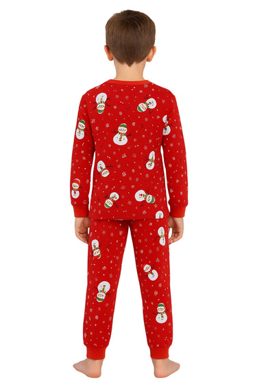Unisex Yılbaşı Kardan Adam Desenli Çocuk Pijama Takımı