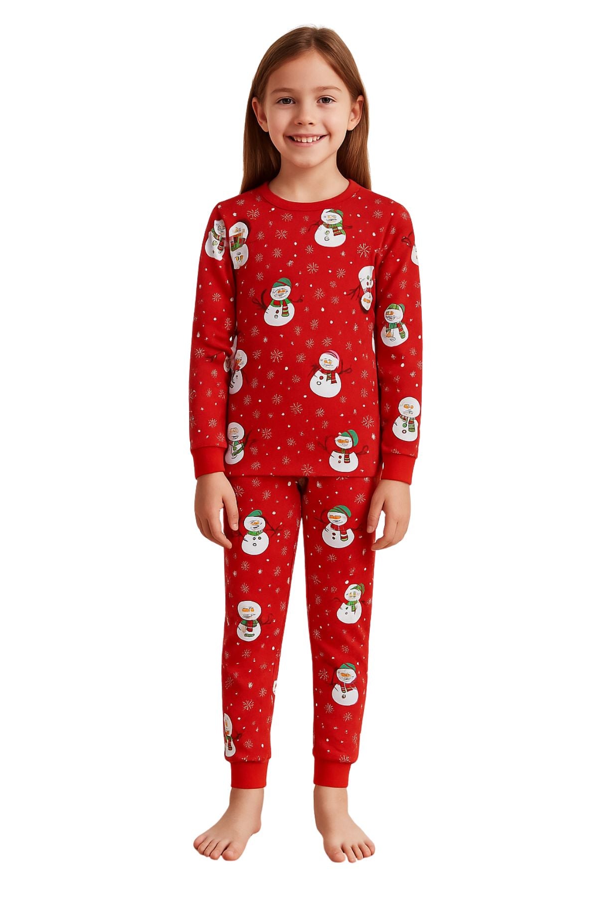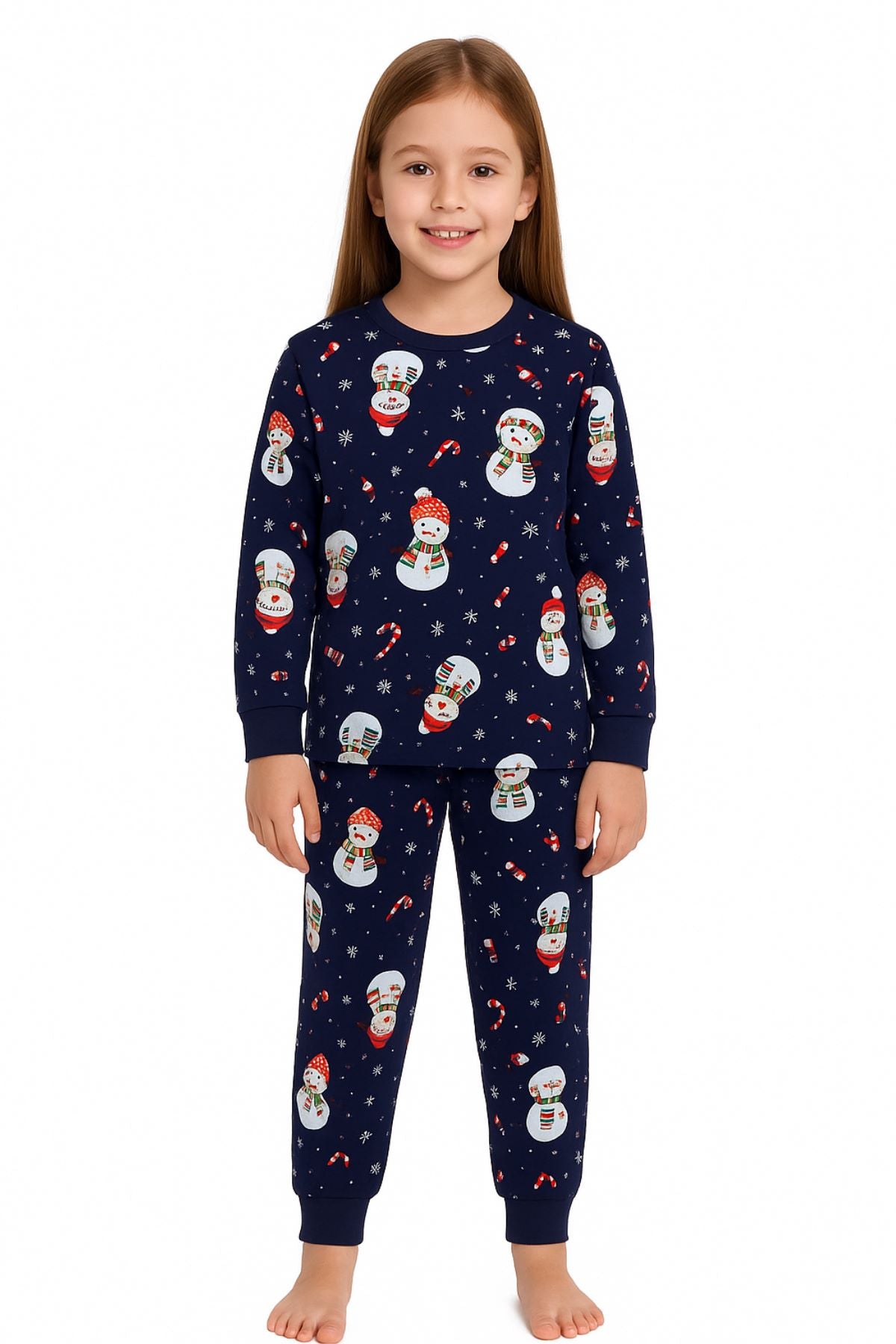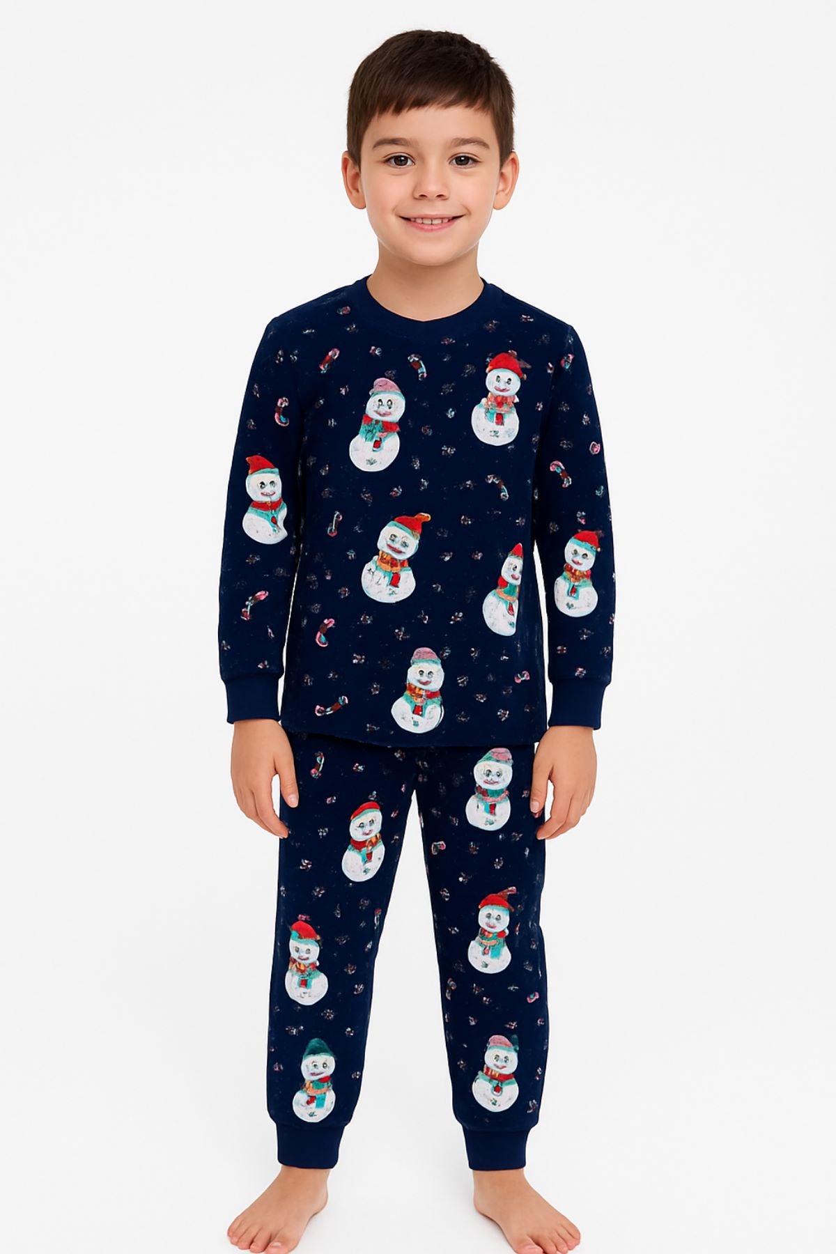 Unisex Yılbaşı Kardan Adam Desenli Çocuk Pijama Takımı